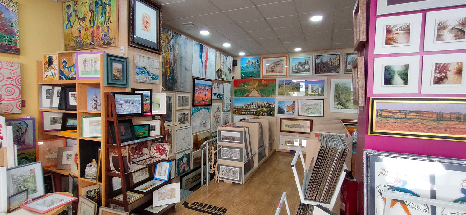 Tienda especializada en lienzos y marcos. Sala de exposiciones y venta de obra de artistas locales, nacionales e internacionales.
